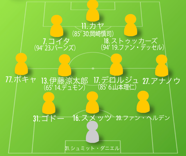 チームは岡崎選手が出場直後の86分にアブバカリ・コイタがカットインから左足でミドルシュートを放つ。これが見事にゴールネットに突き刺さり、1-0で開幕戦勝利を飾っている。