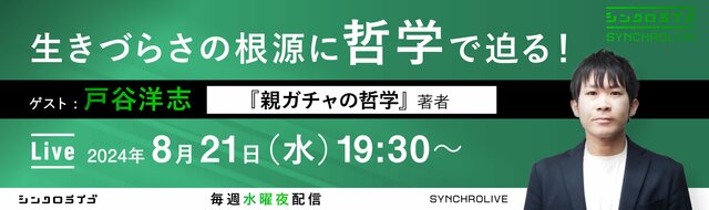 そこで『親ガチャの哲学』『恋愛の哲学』など哲学に関する著書を多数出版している戸谷洋志さんに、なぜいま哲学が求められているのか、哲学を学ぶ効用ついて伺った。