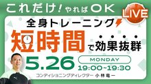遠藤選手のパーソナルトレーナーであり、自身もボブスレーで五輪に出場した経験を持つ小林竜一氏によるトレーニングコンテンツ『ジムいらず!3分で体を変える「ボブトレ」』にて、5月26日(月)に第2回目のオンライントレーニングがライブ配信予定。