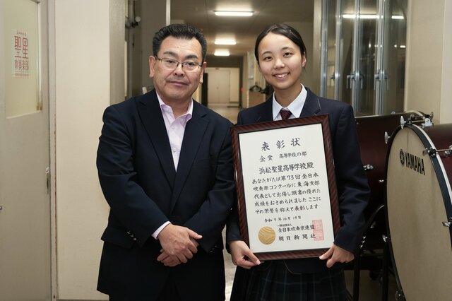 土屋先生の横で表彰状を受け取った部長で3年生の森田蕗乃(ふきの)の目からは、思わず涙がこぼれた。表彰状には確かに「金賞」と書かれていた。間違いではない。吹奏楽コンクールの歴史にも、浜松聖星高校吹奏楽部の歴史にも、金色の記録を刻んだのだ。
