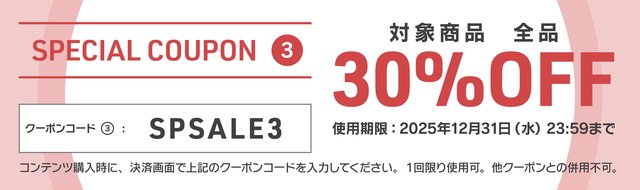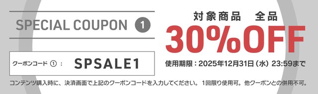 クーポン利用で対象商品が全品30%OFFの特別セールを開催中。年末年始はシンクロナスのコンテンツをお得に楽しもう!(2025年12月31日(水)23:59まで)