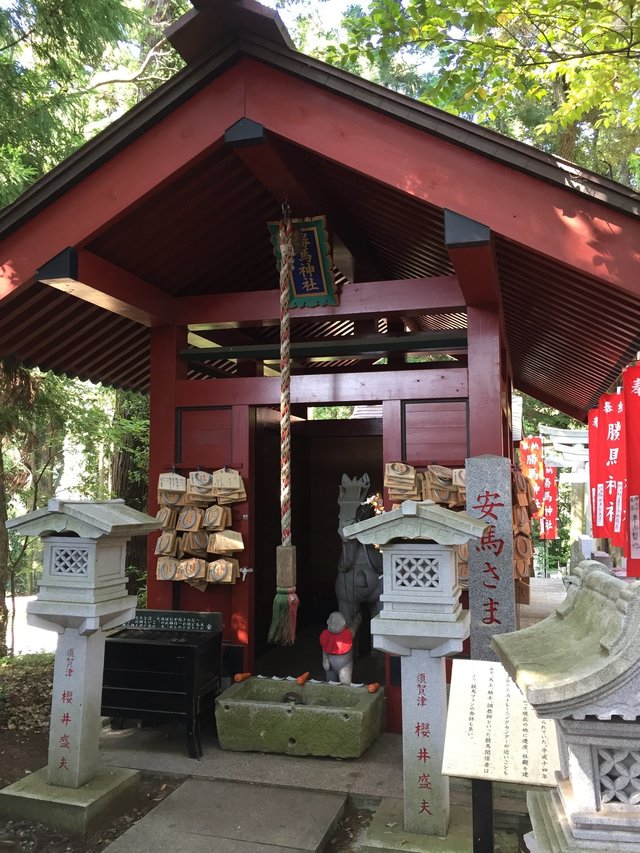 大杉神社の境内にある競馬の神様として親しまれている神社。近くに日本中央競馬会のトレーニングセンターがあり、騎手や調教師、馬主など競馬関係者や競馬好きな人々が必勝祈願に訪れることでも知られています。