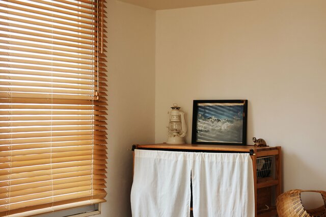 ブラインドもティッシュケースもゴミ箱も、見えないところでは、収納の仕切りの箱だって木製です。しかも明るい色の木製ばかり。