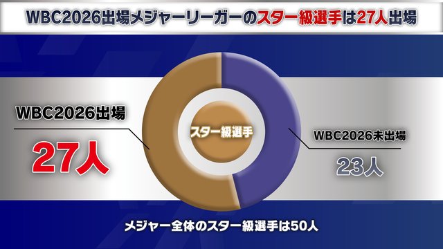 ――今回のWBCに出る選手で、打撃、走塁、守備、投球を総合的に評価して選手の貢献度を表す「WAR指標」が4以上だと、我々が勝手にスター選手とさせていただきましたが、メジャーで50人いるうちの27人が出場。
