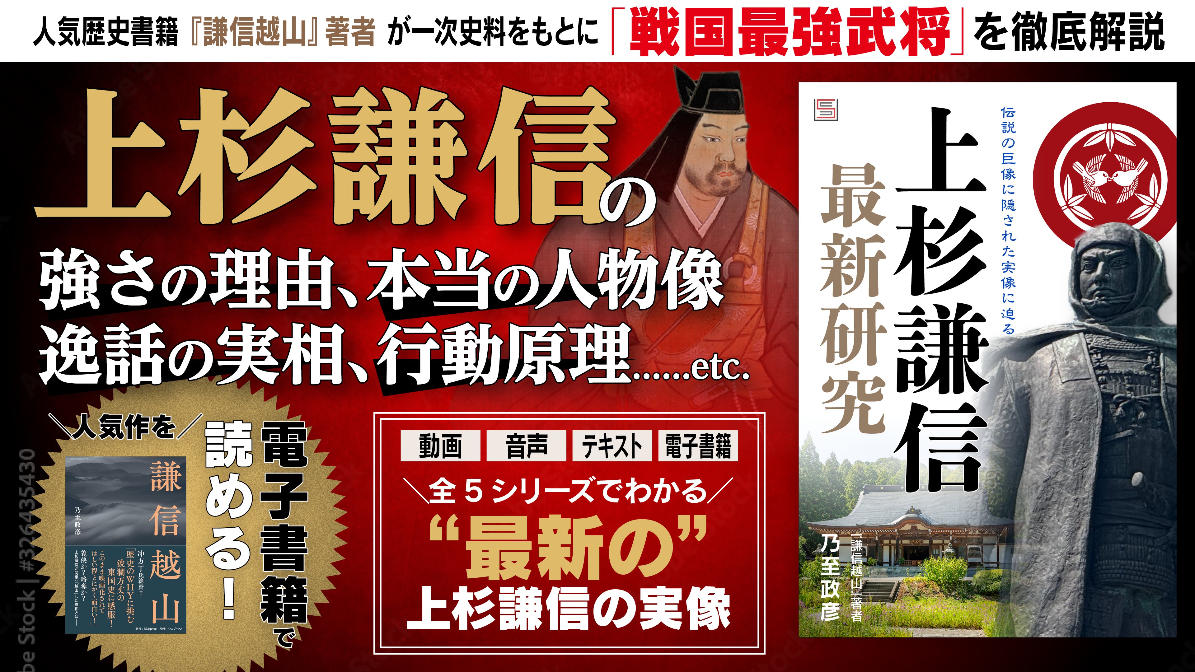 本記事で紹介した『謙信越山』の電子書籍版をはじめ、上杉謙信に関するコンテンツ全5シリーズがまとまったWEBコンテンツ『上杉謙信「最新研究」』がシンクロナスで好評発売中!