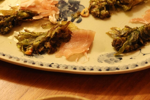 真美さんの本では、本当にシンプルに、フキノトウを揚げ焼きして生ハムをドサっと盛り付けている感じでした。