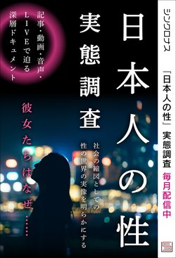 本コンテンツでは、性にまつわるトピックスを、さまざまな視点から考察していく。記事だけでなく、動画、音声、LIVEなどのイベントにより、根底にある日本人のセックス観をあぶり出す。