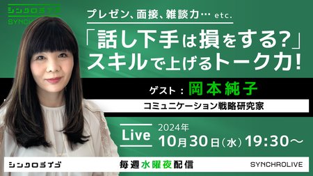 シンクロナスは様々な分野のトップランナーをお招きして、「日常を豊かにする90分チャージ!」と題したライブ配信をお届けいたします。お仕事後、お休み前のひとときに「シンクロlive」をお楽しみください!