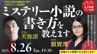 | 2025年8月26日(火)開催 | ミステリー小説の書き方を教えます 天祢涼×額賀澪 対談配信 |