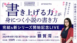 実践的創作講座「『書き上げる力』が身につく小説の書き方」全16回の完結&新シリーズ開始を記念して、小説家・額賀澪さんのLIVE配信を開催!