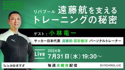 今回のシンクロLIVEでは、そんな遠藤航選手の「フィジカルの強さ」に迫るべく、遠藤選手のトレーニングをサポートしている小林竜一さんをお迎えし、遠藤選手が行なっているトレーニングや、遠藤選手を支える小林さんのトレーニング理論、元ボブスレー五輪代表からサッカー選手のサポートするという異色の経歴について伺う。